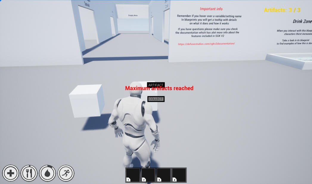 Notification I added that appears when the player attempts to pick up more artifacts than they can hold